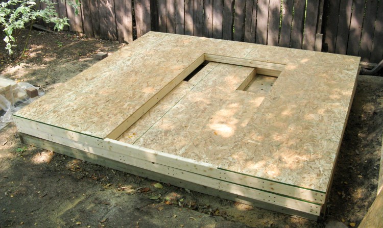 Once the frame was done, I started nailing on the 3/4" treated plywood for the floor.