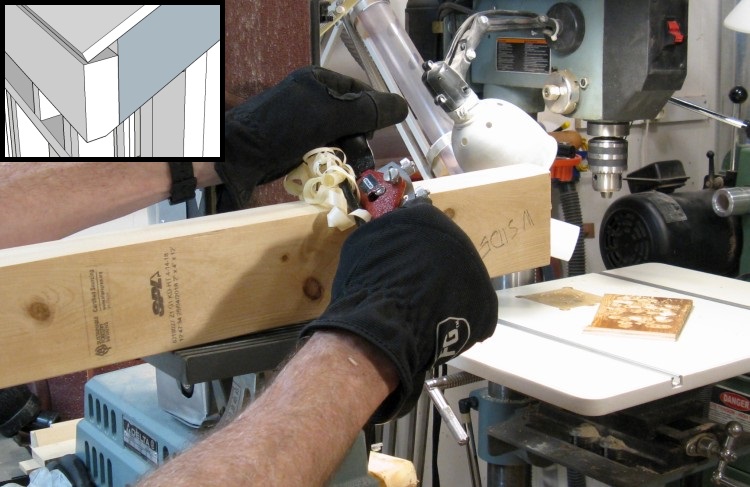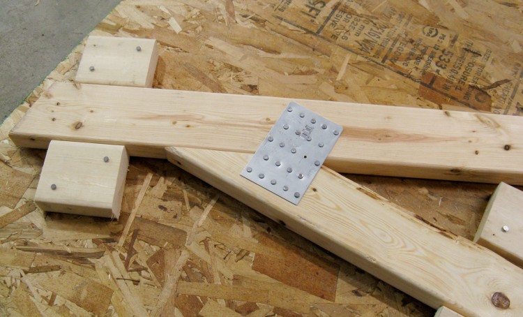 Right-angle jig added for cutting the small angle of the truss crosspieces