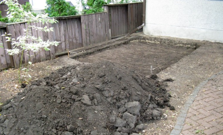 The area was excavated by shovel, with the dirt piled nearby until we could dispose of it. I estimated that about 1.3 yards of soil was removed.