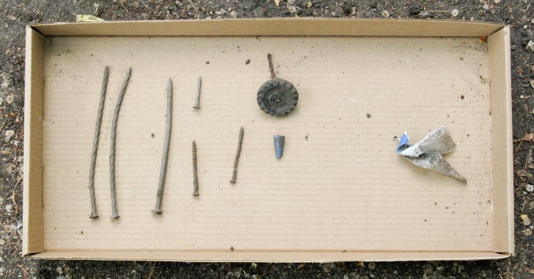 I threw any man-made objects I dug up into a cardboard box to see what had been in the soil.