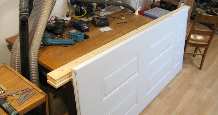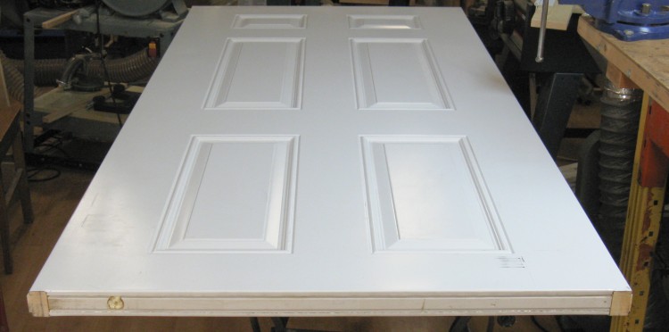 I definitely wanted the door to open 180 degrees, so something needed to be fixed. After some thought, it looked like the hinges could just be changed from the 3-1/2" models I used to 4" models. This would move the door out another 1/2" to give about 1" of clearance which should be enough.