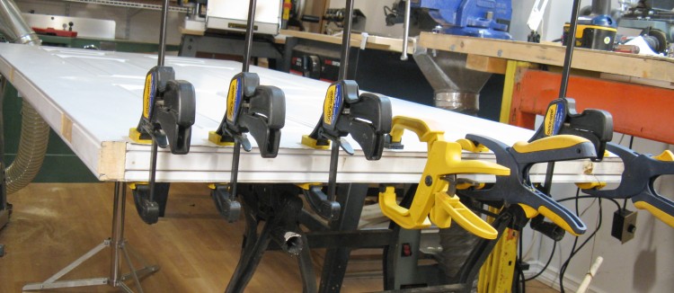 So then back to what I was doing before the door clearance fix; the door frame trim (brickmould) was added after thinning it on the bandsaw from 1.25" to just under 1".