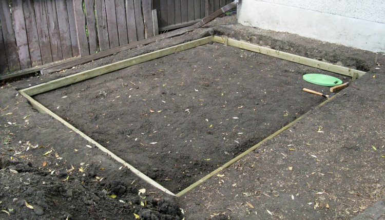 Gravel base levelled and tamped
