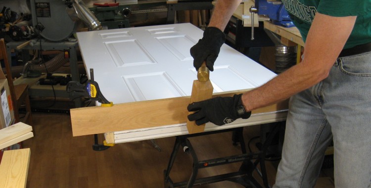 After that was done, the door was mounted and mortises for the door latch and the jamb strike plate were carved out.