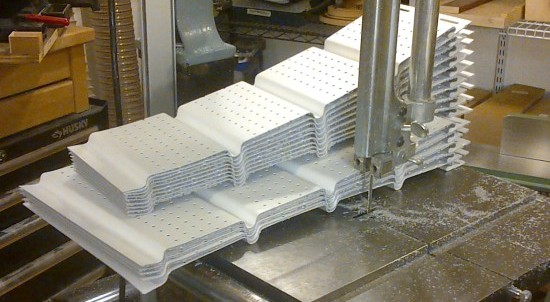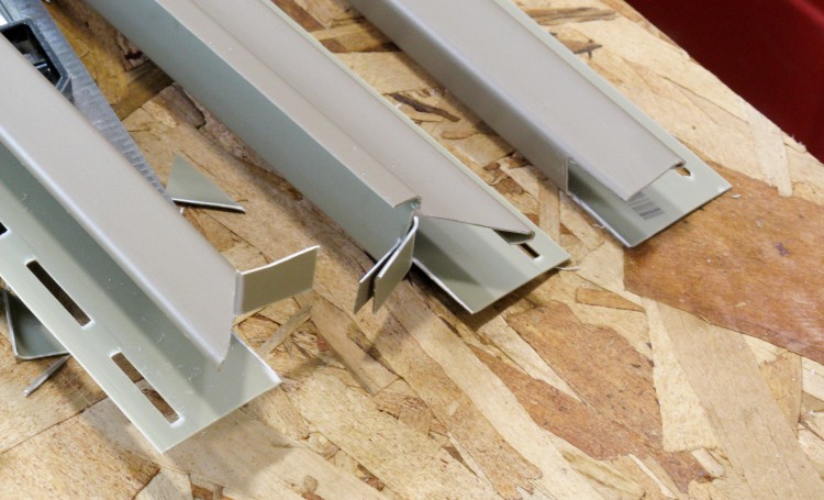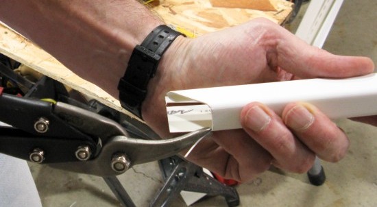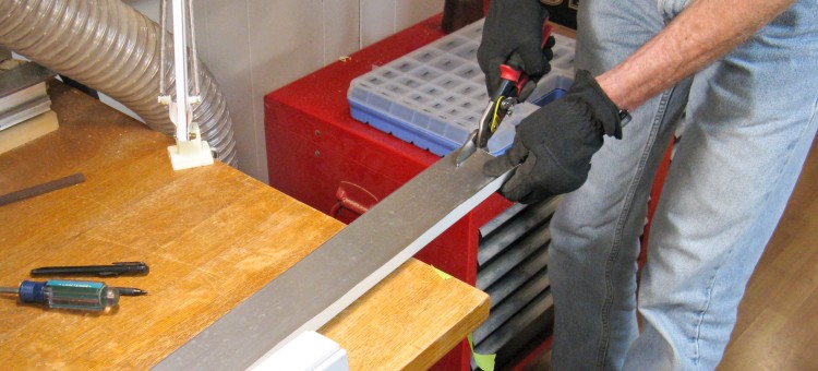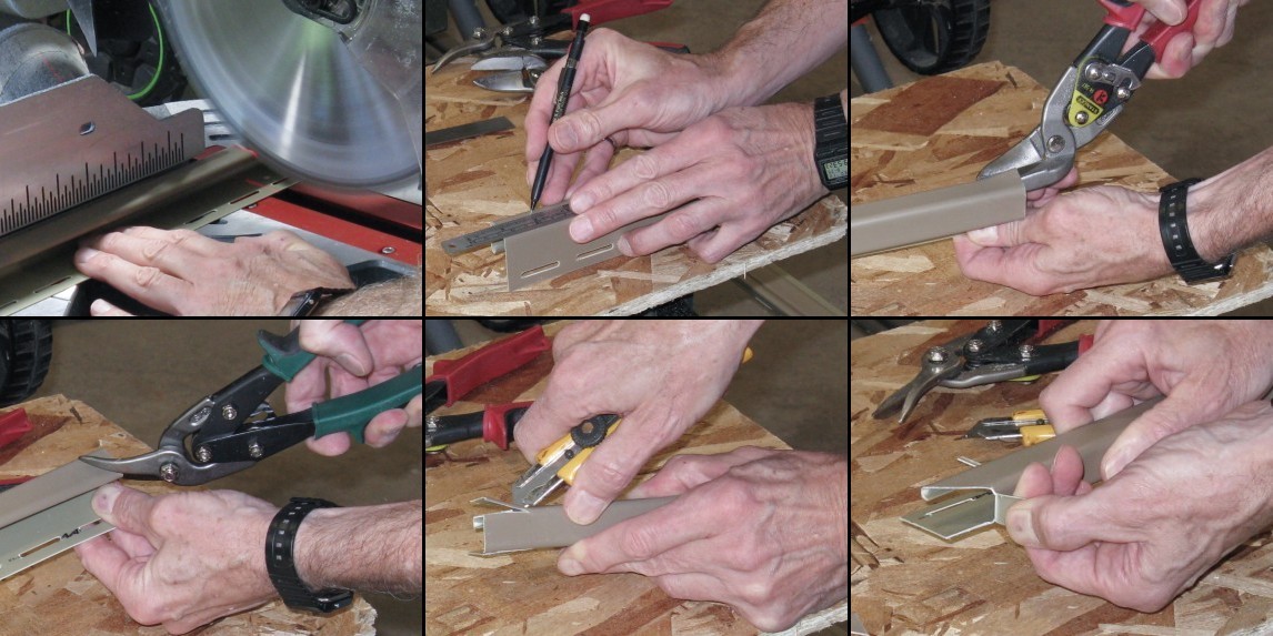 The above montage shows one of the J-channel trim pieces being cut to shape. This one will go along the top of a window with the bent-over tab inserting into a slot in the vertical side piece. There were about 24 pieces in all that needed to be cut to length and trimmed appropriately at each end.