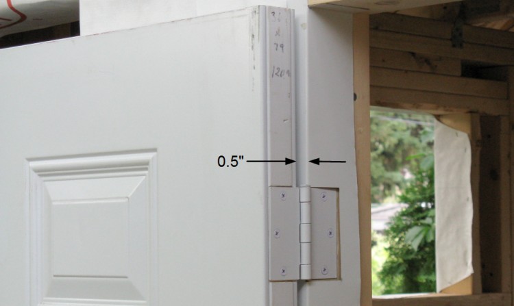 Then with everything back together and the new hinges in place, I was happy to find that the door still closed correctly. And the clearance to the wall is the one inch that I needed.