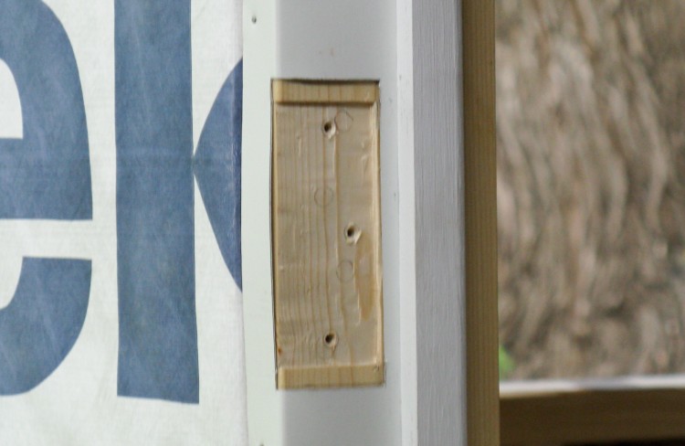 The new hinges had four holes, two of which came close to existing holes, so I fashioned some plugs from 2x4 material and glued them into the existing holes (on both the frame and the door) to make sure the new screws held well.