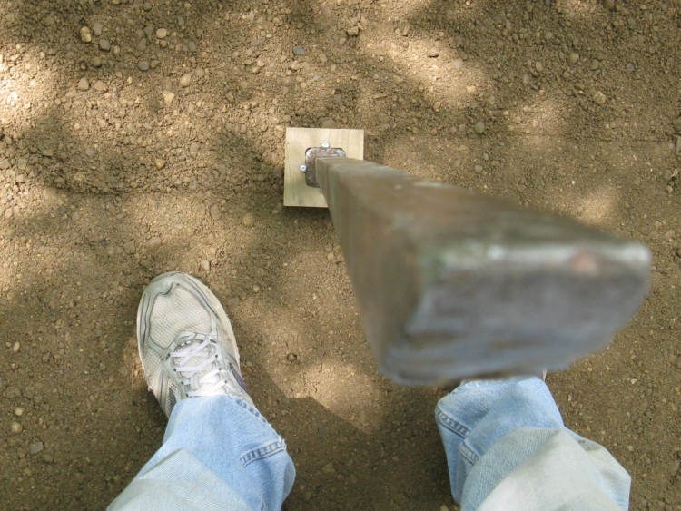 When we bought the house there were a number of rusty metal things lying around, most of which have turned out to be useful over the years. One of them is the rod used as a tamping bar. It's a 1"-square steel rod with a bevel on one end and a cap welded to the other.