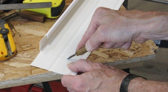 Cutting eaves trough to length