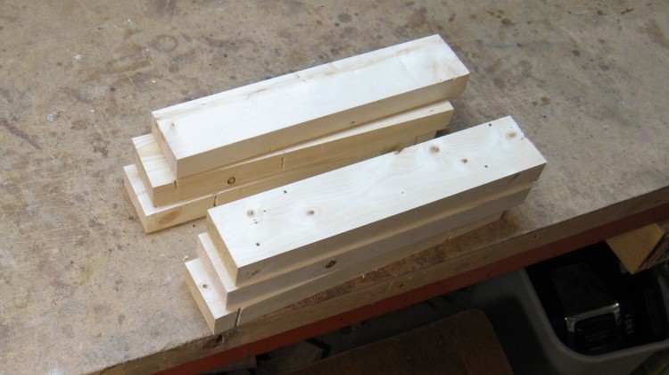 The sides needed to be a bit taller than two of the 2x4s so three narrowed pieces were made for each of the sides.