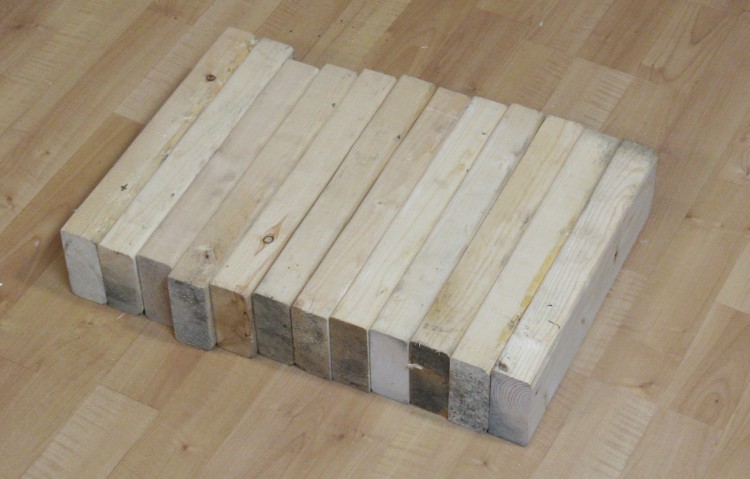 I had a decent little pile of 2x4 pieces each about a foot long left over from shed building and I thought it would be nice to be able to use them for something other than increasing the height of the landfill. Incorporating them into an exercising step seemed like a good application.