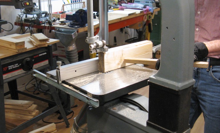 The flat side was placed against the fence to cut the wood to a 1" thickness on the bandsaw. Then it was back to the jointer to clean up the edges so they would be ready to glue edge-to-edge.