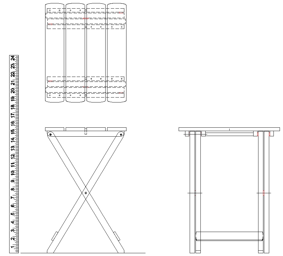 It was a bit more convenient to measure the table in metric as opposed to imperial (for example the legs were 20 mm wide rather than 25/32") so I ended up doing the drawings in metric as well. That worked fine although I confess I'm still more comfortable with my old friend the inch. However when you find mentions of dimensions below in millimeters, this is why.