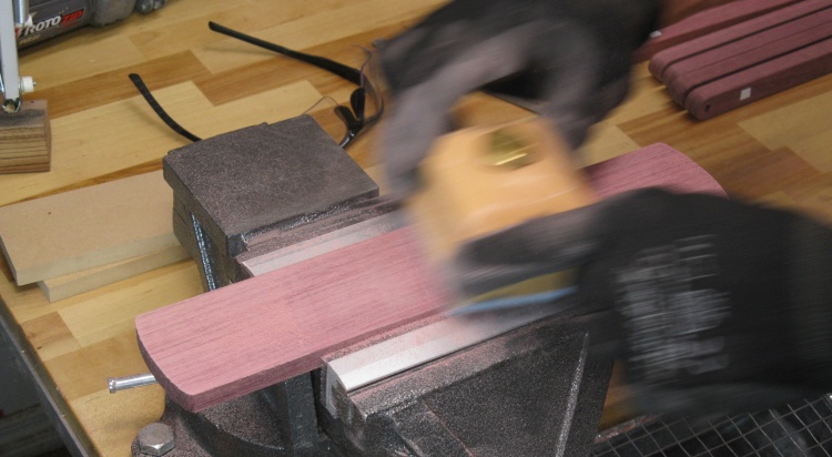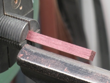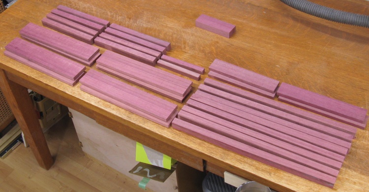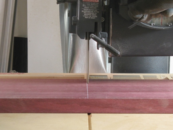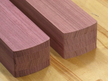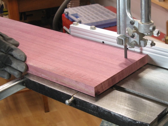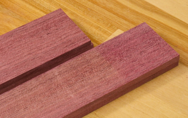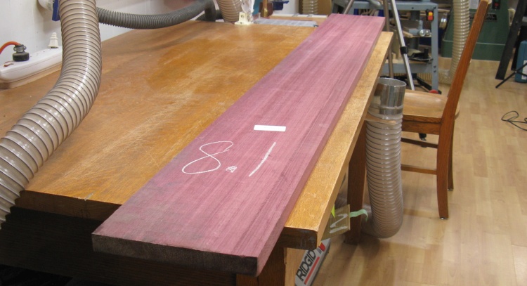 Fortunately purpleheart is relatively common and was available at the local Windsor Plywood. It comes from a family of "medium to large" trees with heights of 100 to 170 ft and trunk diameters of 3 ft to 5 ft. That would be a bizzarely large tree in cold cold Saskatchewan but I suppose not unusual in a tropical forest.