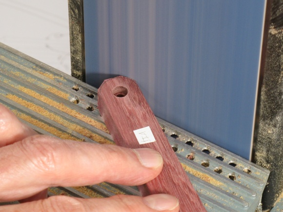 The joists received similar screw holes to the legs, although only one of the two hole types per joist. Again the holes for the nuts were converted to hexagonality with the aid of a chisel.