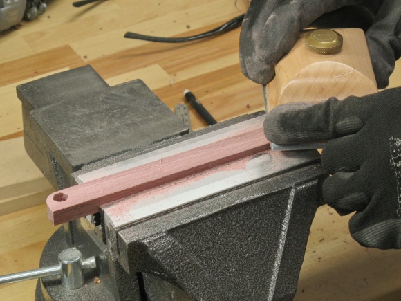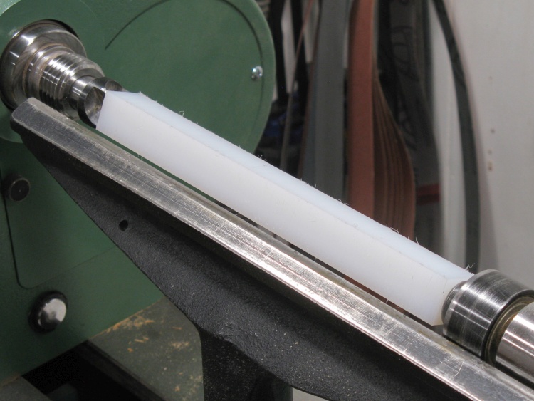 A handle blank on the lathe