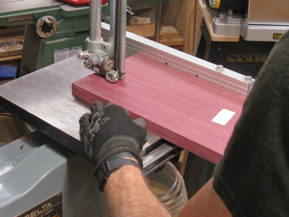 I planned out how to cut the plank size I had into pieces with the minimum wood wastage. Then I got to it with the radial arm saw and the bandsaw. I first cut the plank into sections and then cut pieces out of those smaller sections.