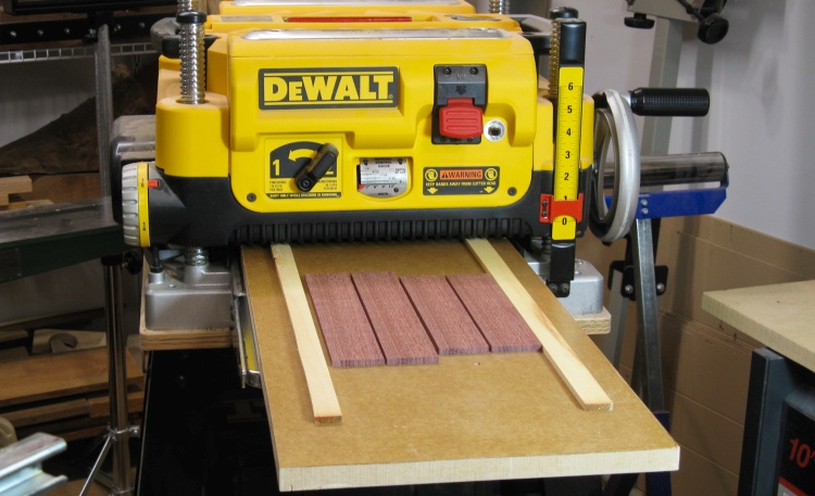 The rough pieces were planed to the correct thickness using the planer and the anti-snipe sled. I used that instead of the sander since I needed to take off more material.