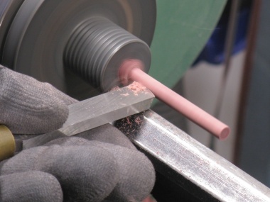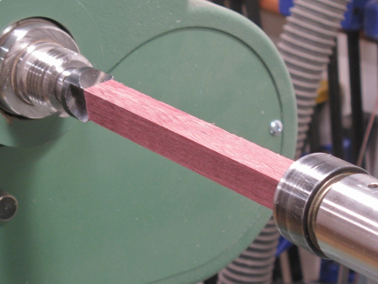 This shot shows the square-sectioned blank ready to start.