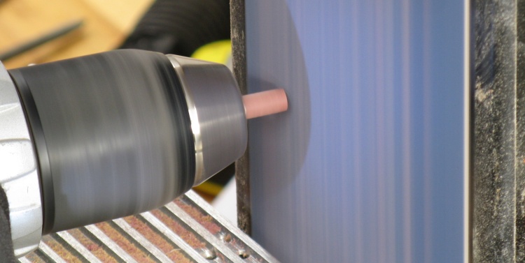 Using a small chisel to change the hole from round to hexagonal