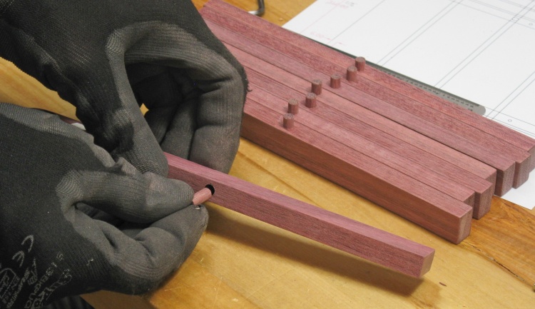 The spacing pegs were pretty easy; it was just a matter of rounding a blank to a 6 mm diameter and cutting them to length.