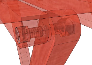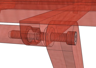 The (next to) last step was assembly. These X-ray diagrams show the three types of joints formed by #10-24 bolts with locknuts. I wanted any exposed ends of the bolts to be flush. A 1" bolt worked out just right on the first joint, I used a 1-1/2" for the next joint (where the extra length wasn't critical) and I cut a bolt off to 33 mm length for the last joint.
