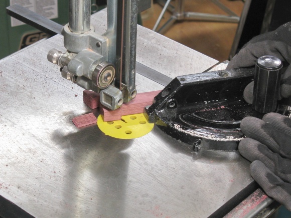 I started by cutting a 3/4"-square blank on the bandsaw.