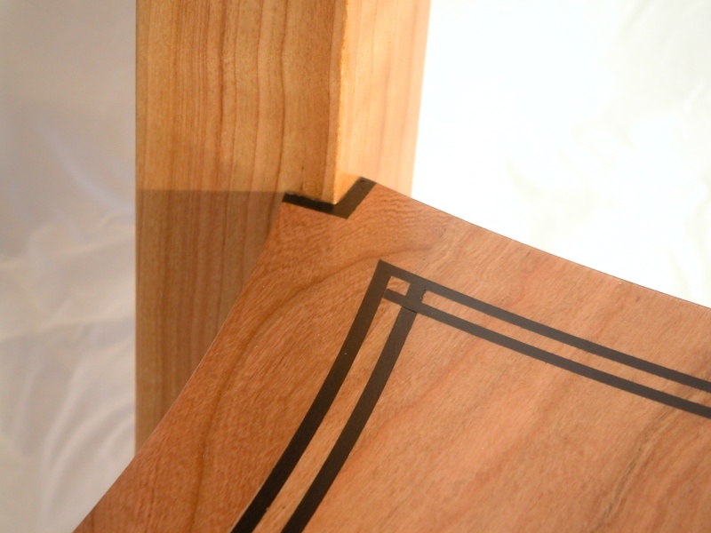 The inlay is African Blackwood. I made lengths just over 1/8" square to fit into 1/8" routed slots. I then tapered the edges of the inlay pieces at a small angle so they would wedge into the slots to eliminate any gaps. The ends were shaped as necessary (and tapered as well) and then after glue was applied, the pieces were tapped into the slots with a small hammer. The surface of the piece was then sanded to bring the inlay flush with the surrounding wood.
