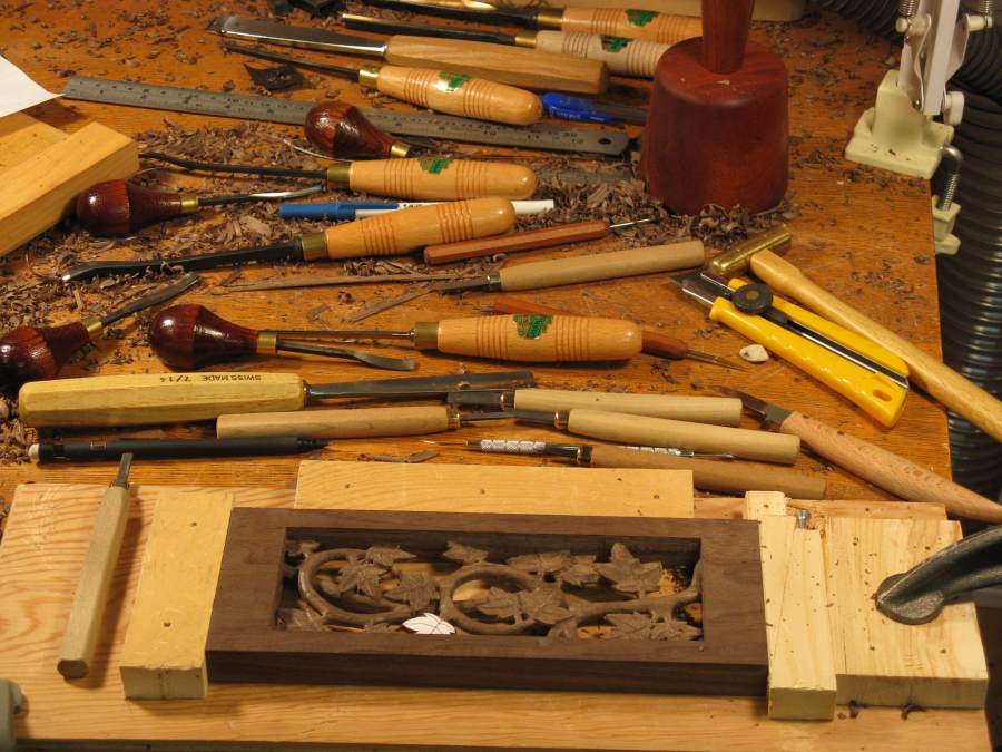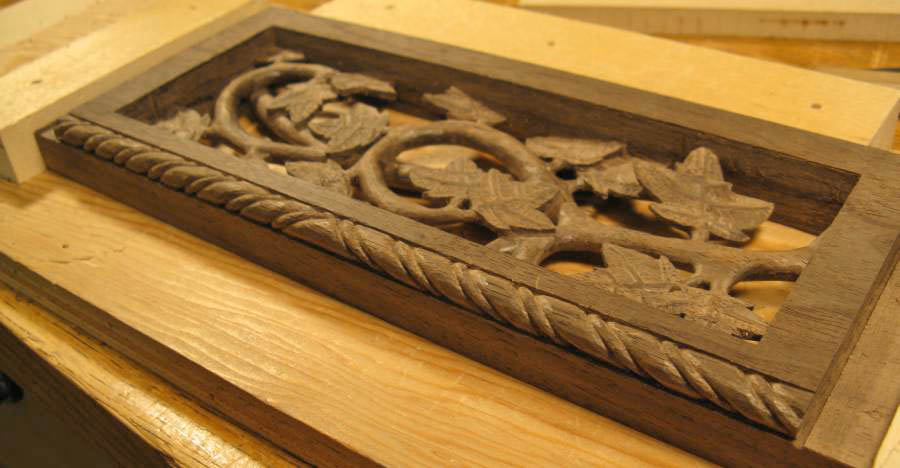 Carving the panel was the most time-consuming part of the table, and took about 50 hours.