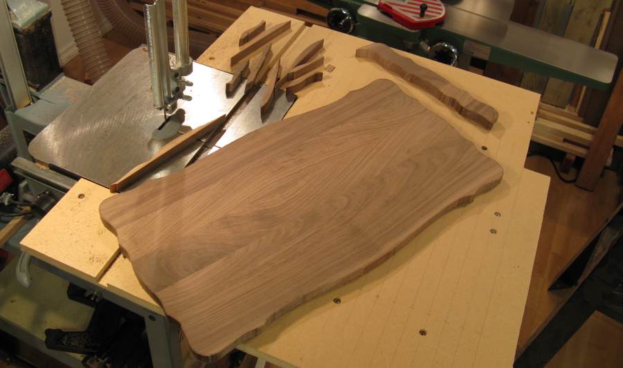 Anyway, the top was cut out on the bandsaw as shown, and then sanded to the lines using a spindle sander.