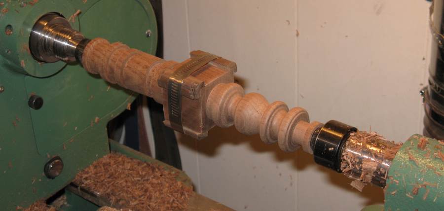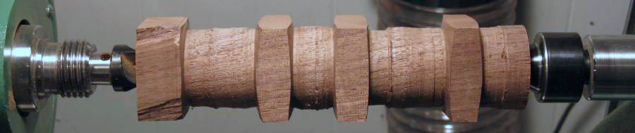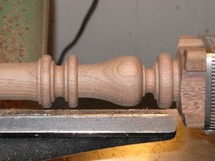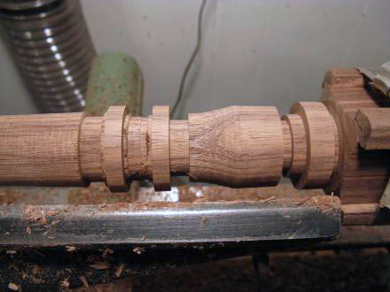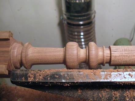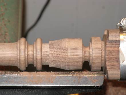 Once the appropriate diameters were established, the individual sections could be shaped. The first three shots below show one section with the diameters roughed, and then with final shaping.