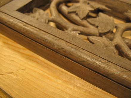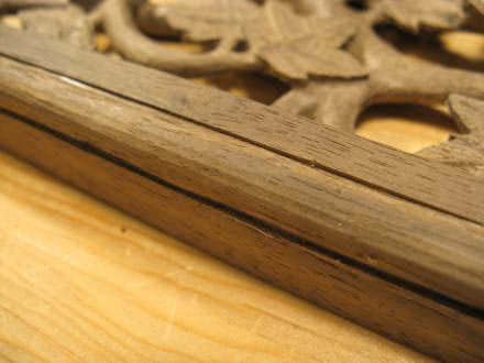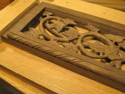 The beading ended up being fairly time-consuming due to all the detail work. The beading on the carved panel above took about 4 hours, but the sides, being longer in length took 6 or 7 hours each. All together about 20 hours was spent on the beading.