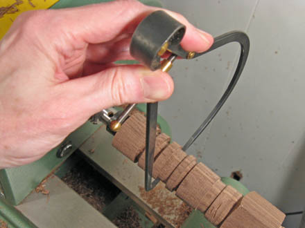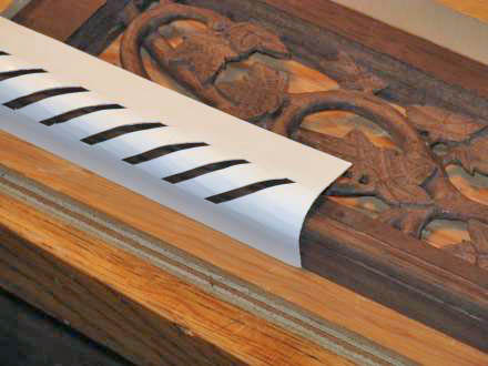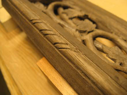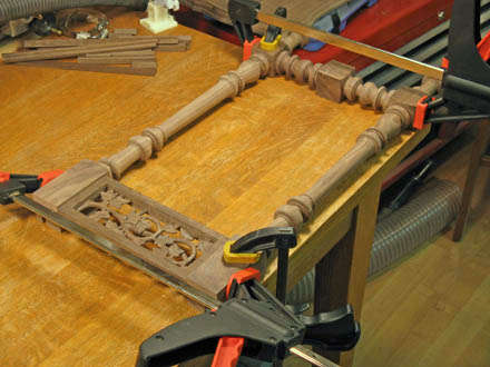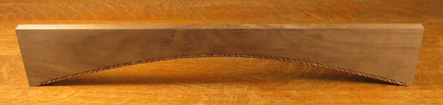 The beading was started by rounding the edge, using chisels and a spokeshave. The location of the "wraps" in the "rope" were then marked using a cardboard pattern to ensure consistency.