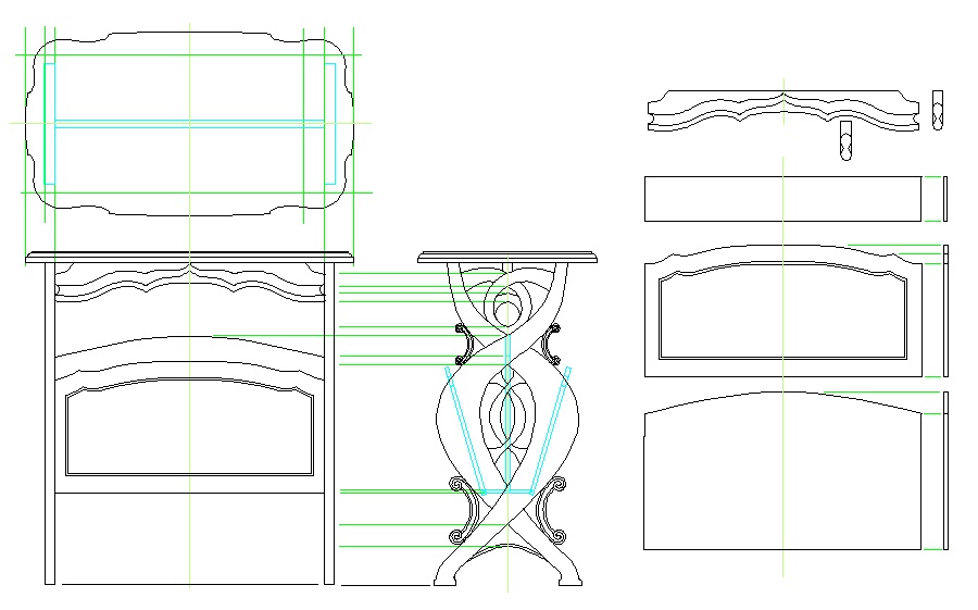 The two ends cut to shape and marked with the design. The holes are for sabre-sawing