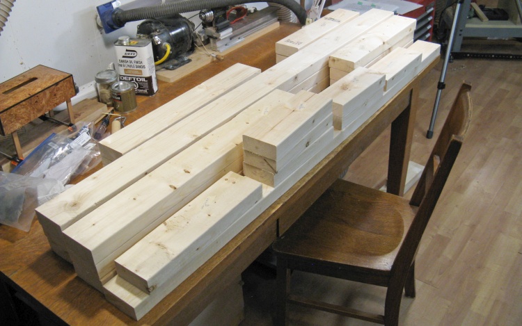 Only the tops of the two table sections used full-thickness 2x4s. The rest of the pieces were to be half-thickness since the extra strength (and weight) weren't needed.