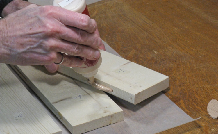 I wanted to avoid glue squeeze-out onto the board faces so I applied glue only to the biscuits themselves.