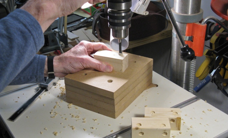 I planned to use 2" pan-head screws so to get a bit more depth I drilled 1/8"-deep counterbores for the heads. Clearance holes were drilled after that.
