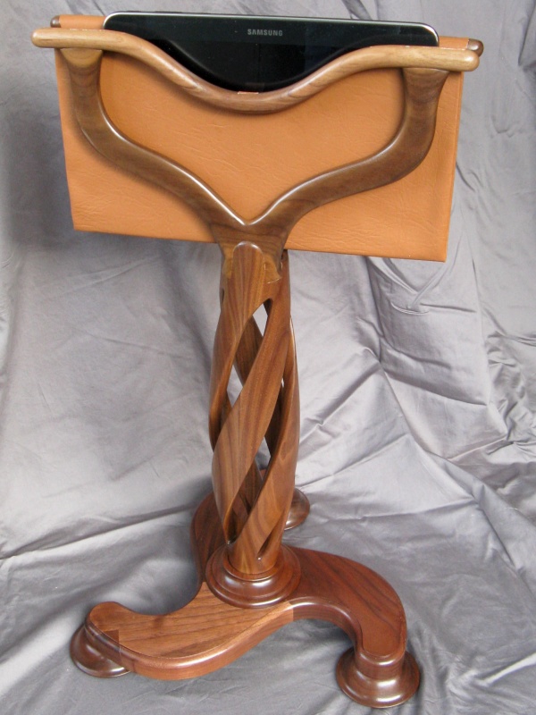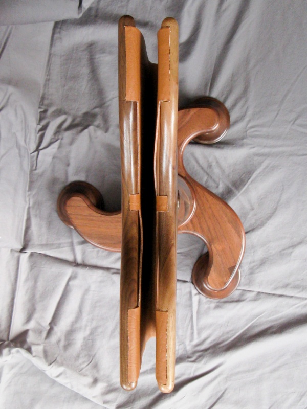 The tablet rests in a sling made of a thin leather-look material and the holder was designed to be lower than the chair arms so neither it nor the tablet would get accidently hit. A pair of top rails support the sling, and incorporate a center dip to make grabbing the tablet easier. I rather fear that this may not be an article with a great deal of longevity. While I did make it adequate to hold a larger tablet, it probably isn't practical for much else. A mind-numbing quantity of construction details can be found