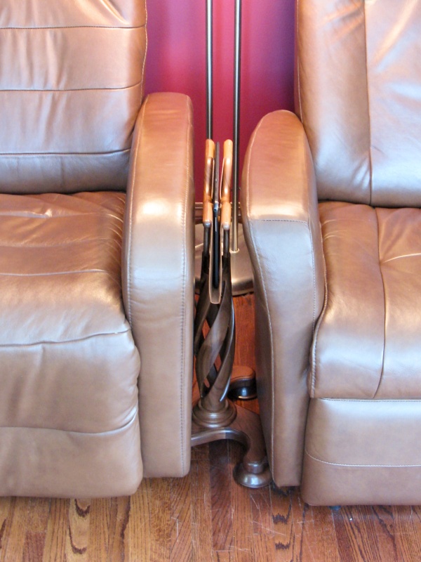 other table when one of us wants it. The solution to this unquestionably First-World Problem was to make a custom holder that fit between the chairs so it could be easily accessed from either one.