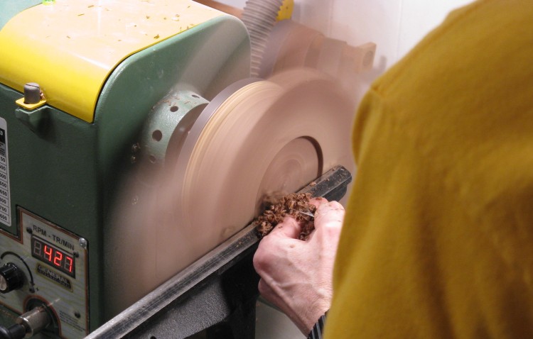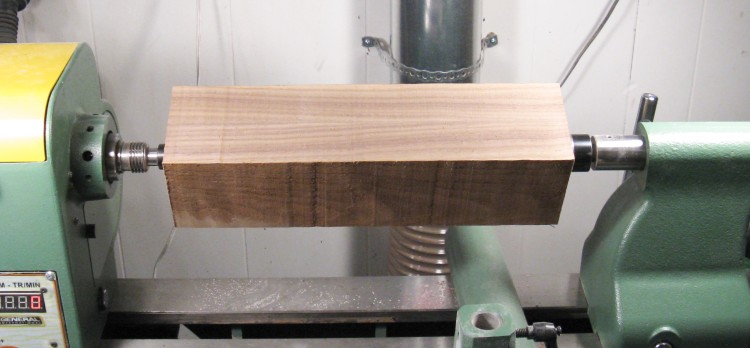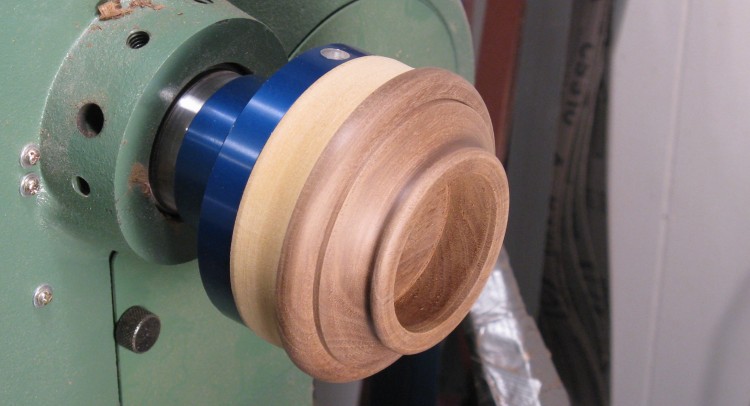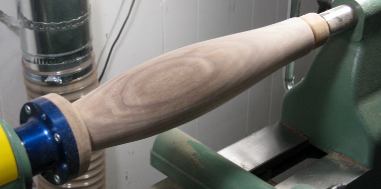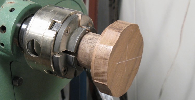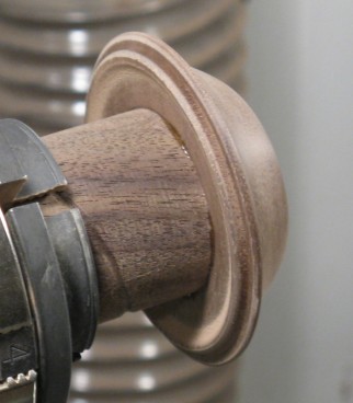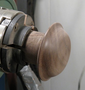 When the rounding was complete and the end trued up, it came off the lathe to have a small faceplate attached.