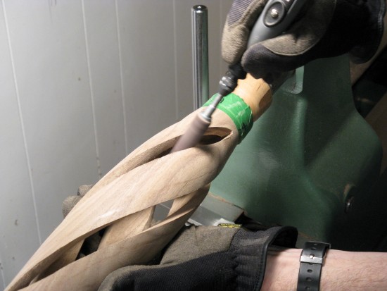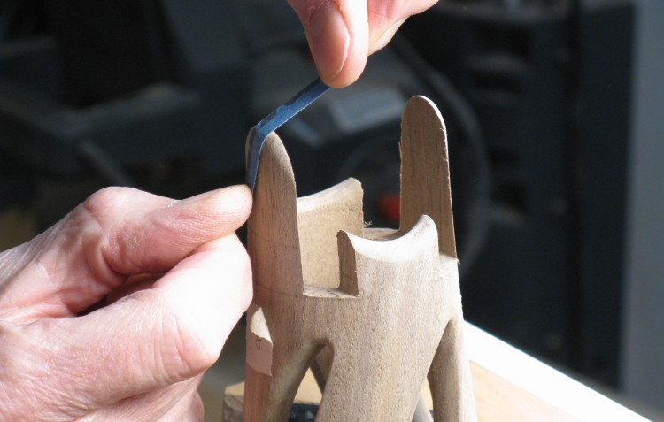 And this is the beginning of the excess wood being cut away, starting at the top of the body.