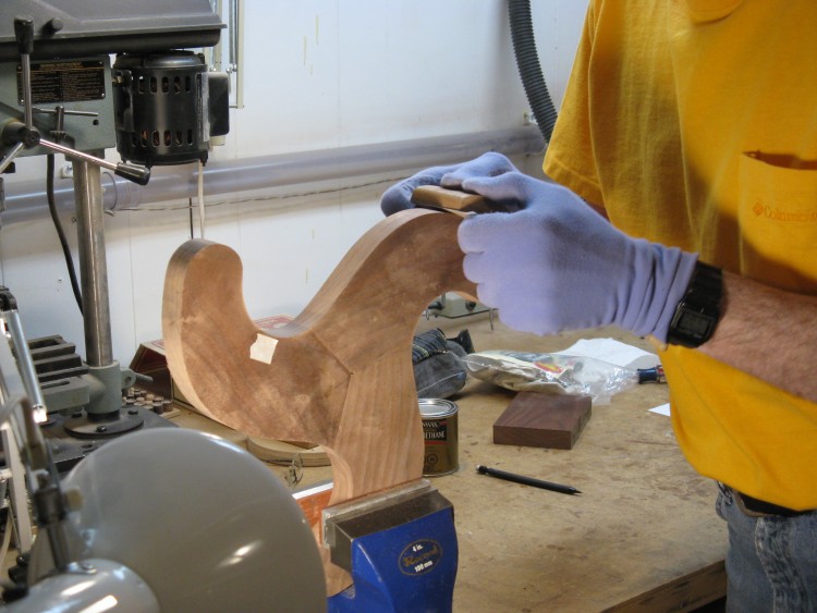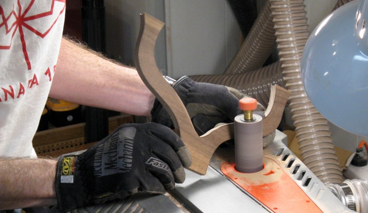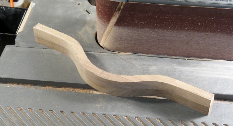 The arms needed to be shaped to get the cross-section from rectangular to elliptical (i.e less rectangulary). I used the spindle sander and then a small drum sander to do most of that, and then hand-sanding to get to the final shape.