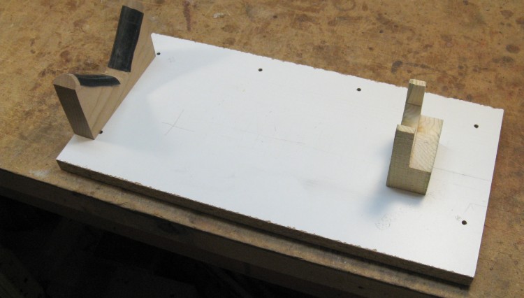 The shape of the body made it tough to hold in a stable manner, so I made a little jig with notches in which it would rest.