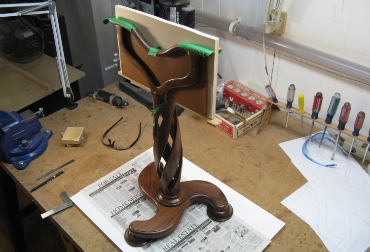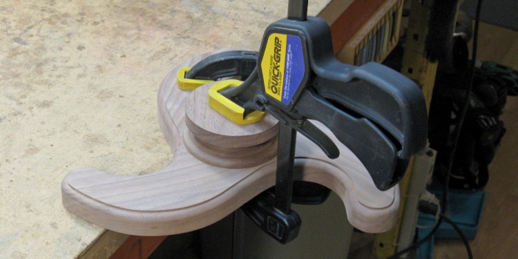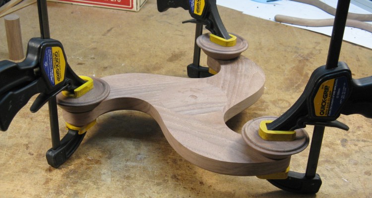 Gluing on the feet was about as simple as glue-ups go. Here they are clamped until the glue sets.