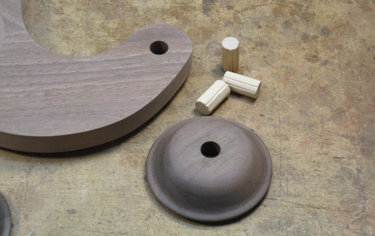 I was less concerned about foot-joint strength, but I included a hole-dowel setup for those as well. At the very least, it made glue-up easier as the dowels located the feet and prevented movement when clamped.
