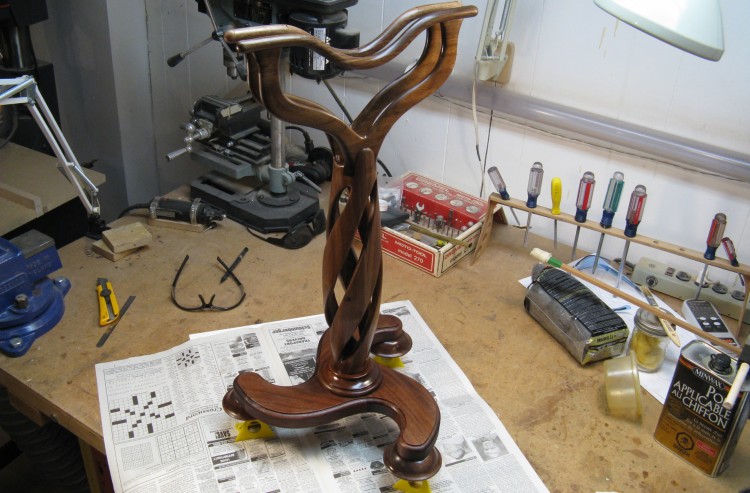 And that was it. The completed stand on the traditional photographer's backdrop (OK, wrinkly bedsheet) is here.
