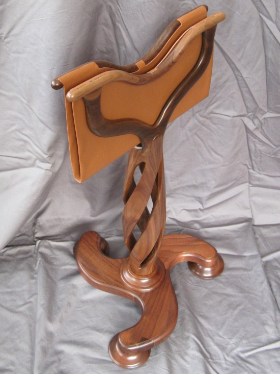 Of course there were no actual tablet holders on the market, much less one in the right size. I thought making one would be a fairly simple project, but it ended up taking a bit of time since it extended across the non-woodworking season (AKA summer). I got back to it the next season but my odd design took a while to finish off due to lots of sanding and shaping.