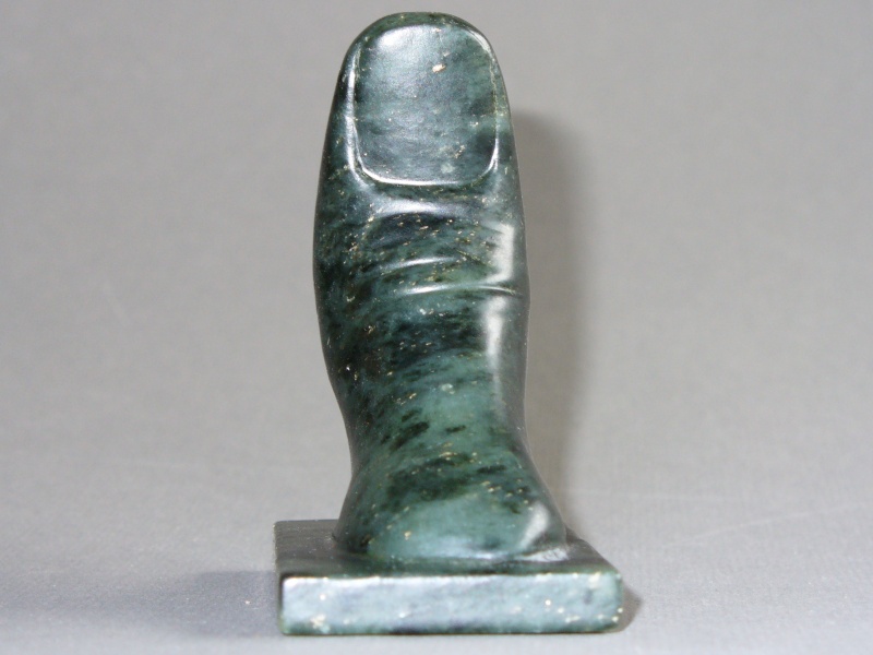 I was interested in doing another carving from soapstone, which I had enjoyed working with in the past. I was having trouble coming up with a suitable subject to carve, so I sort of gave up and just did my right thumb. Soapstone is quite soft as far as stone goes, so you don't need a hammer and chisel as you might with other materials; it can be scraped or sanded away. Of course any sharp tools that are used will be dulled by the abrasive particles