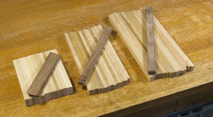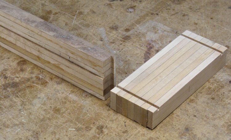 I started by cutting plys for the two long sides. They were cut a bit fatter than needed to let me plane them down to the exact thickness I wanted.