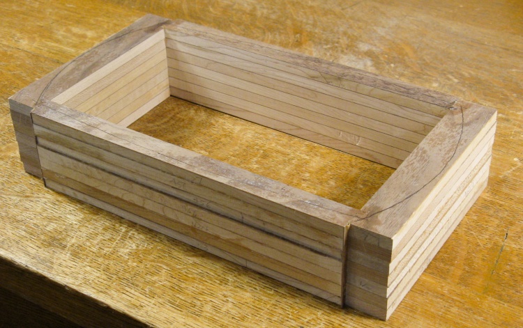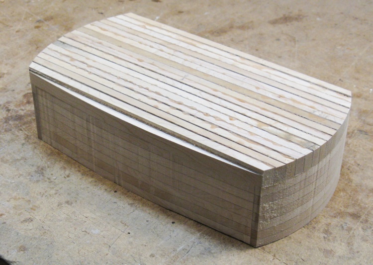 This is the shaped box just off the bandsaw. I would defer the sanding until after the top was added so they could be done in the same step.